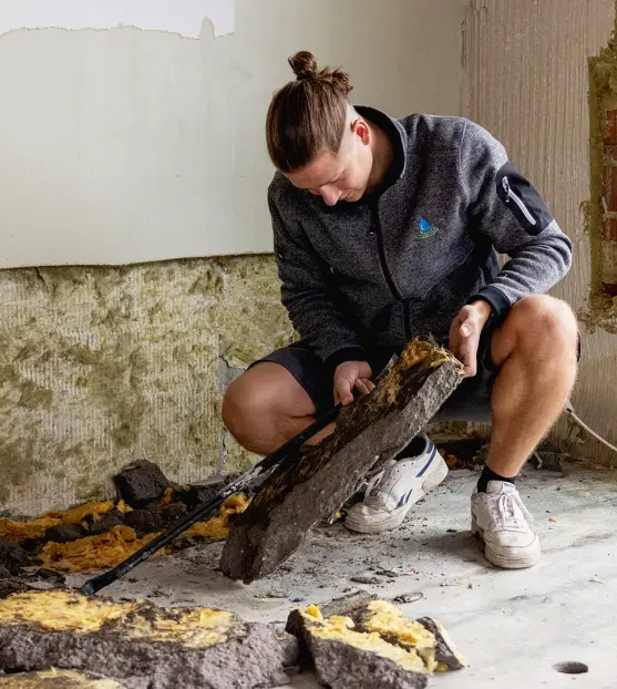 Wir entfernen beschädigte Bauteile sicher und umweltgerecht – ob nach einem Wasserschaden oder im Rahmen einer Sanierung. So schaffen wir die Grundlage für eine saubere und nachhaltige Wiederherstellung.